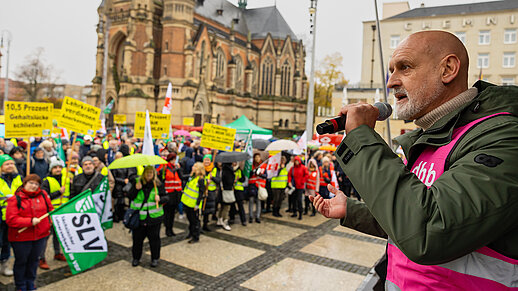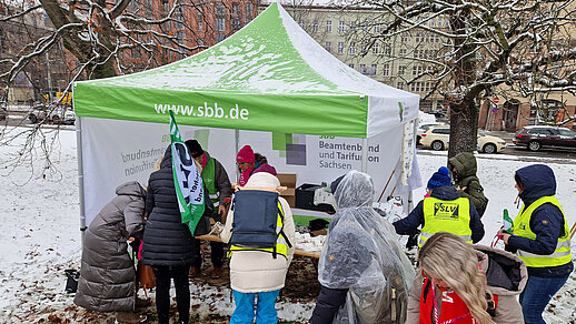 Etwa 7.000 Landesbeschäftigte, darunter viele aus dem Bildungsbereich, legten in Leipzig ihre Arbeit nieder und beteiligten sich am Warnstreik und der Kundgebung.
