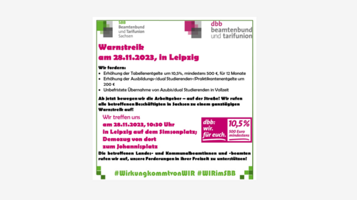 Nikolaus bedeutet in diesem Jahr: Mit frisch geputzten Schuhen ab nach Dresden! Wir sehen uns am Mittwoch, den 6. Dezember 2023 beim Warnstreik und unserer Kundgebung vor dem sächsischen…
