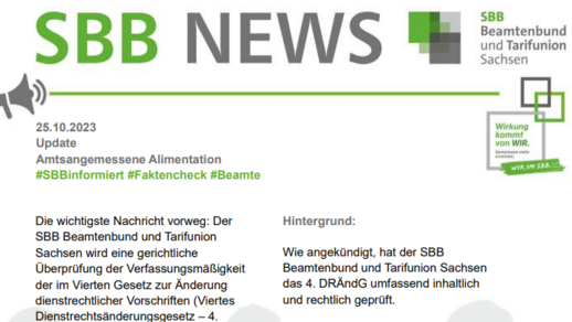 Die wichtigste Nachricht vorweg: Der SBB Beamtenbund und Tarifunion Sachsen wird eine gerichtliche Überprüfung der Verfassungsmäßigkeit der im Vierten Gesetz zur Änderung…