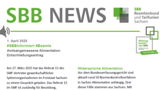 Am 27. März fand im Sächsischen Staatsministerium der Finanzen ein Gespräch mit Vertretern der Gewerkschaften und Vertretern des Referats für Besoldung, Versorgung und Beihilfe statt.